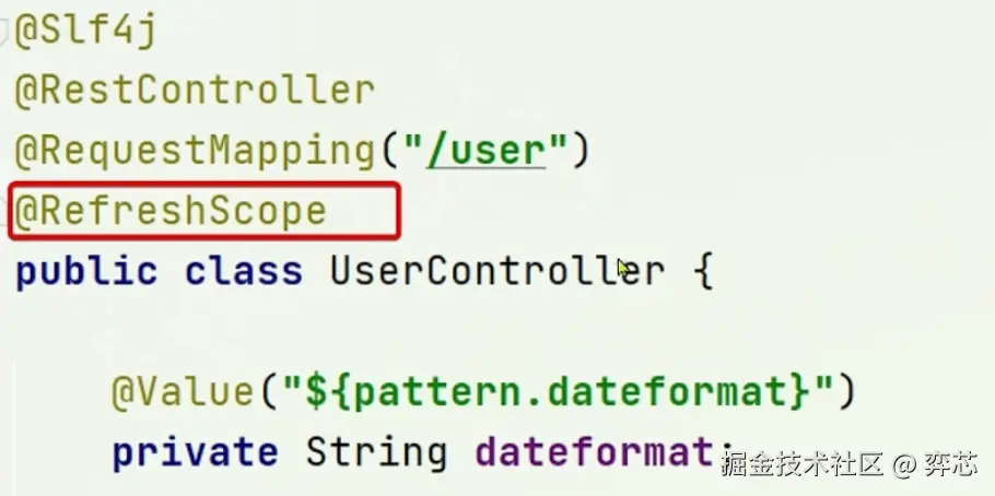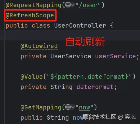 方式一: 在@Value注入的变量所在类上添加注解@RefreshScope 在UserController层