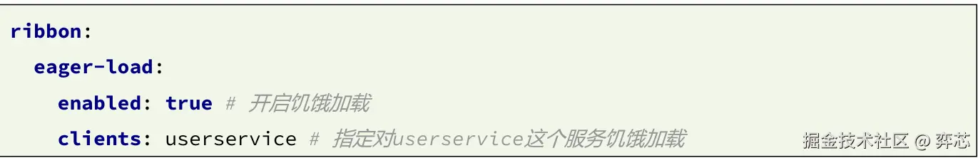 Ribbon默认是采用懒加载,即第一次访问时才会去创建LoadBalanceClient,请求时间会很长。 而饥饿加载则会在项目启动时创建,降低第一次访问的耗时,通过下面配置开启饥饿加载:
