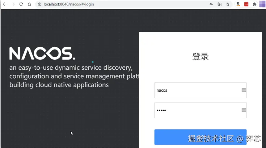 在浏览器输入地址:http://127.0.0.1:8848/nacos即可