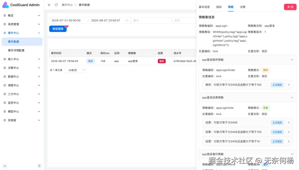 其实这段时间做的还有其他如:消费者幂等处理、手动提交位点策略、ES索引设计、apikey实践应用、dify结合mcp工具等等,还有如上的策略展示,之后需要将规则明细也展示出来,es索引方面考虑索引生命周期管理或者数据流。