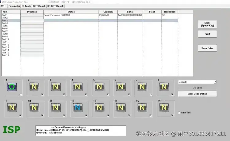 在Parameter设置好以后点Save Config保存设置,然后去第一个Test页面点Start开始开卡。上来就点Start没用的,一般是会报错。