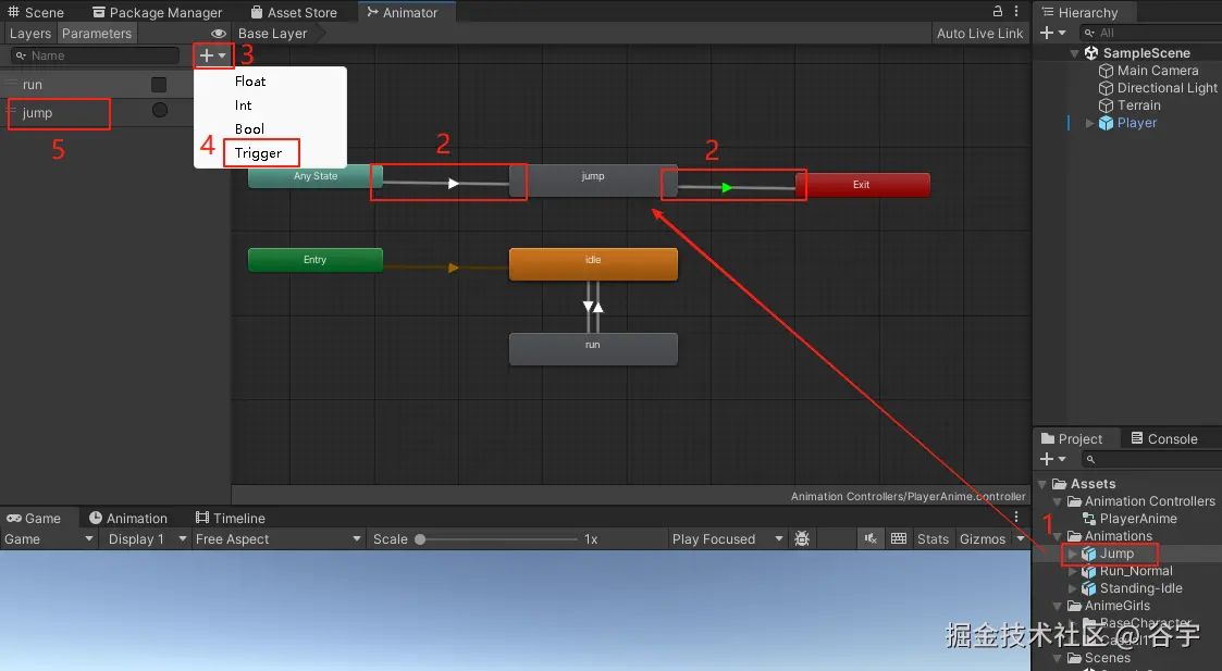 3.然后需要创建一个Trigger变量(我这里的变量命名为“jump”)
