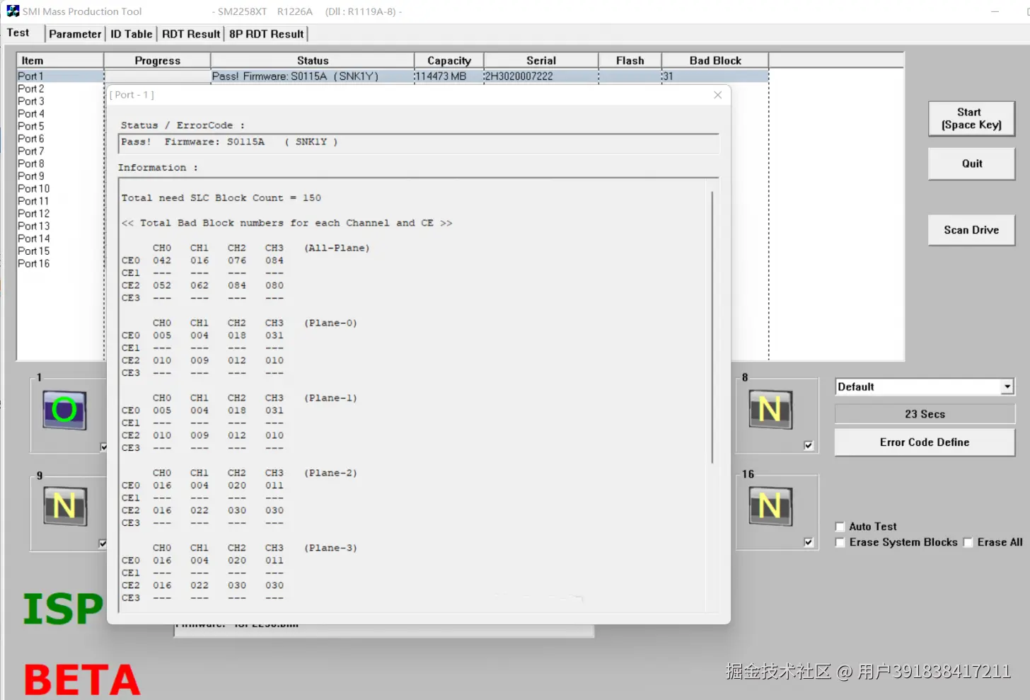 之后看见有人配转接贴上IS917+魔改工具添加参数,感觉找到了希望,急忙照做,结果不知道是不是因为颗粒坏块太多,跑不过圈还会掉盘,第二次尝试再次失败;