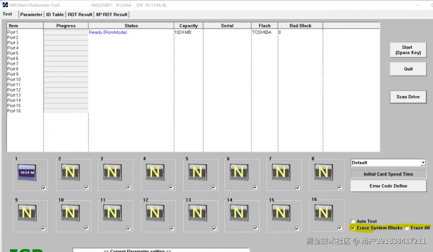此后这两片9UDK成了我心里的一根刺,总想着怎么利用起来,一次无意中逛量产部落网下载工具的时候,看见58XT竟然有SNK1Y的工具,量产部落网不愧是一站式量产工具下载站,不负众望。隧下载一探究竟,没想到FlashDB里面真的有这阴间颗粒的参数,于是赶忙拿出颗粒配转接贴上板测试: