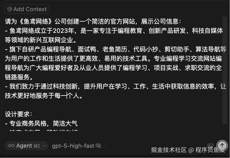 下面我用 Cursor 来体验下 GPT-5 的编程能力,看看是不是真的编程新王?