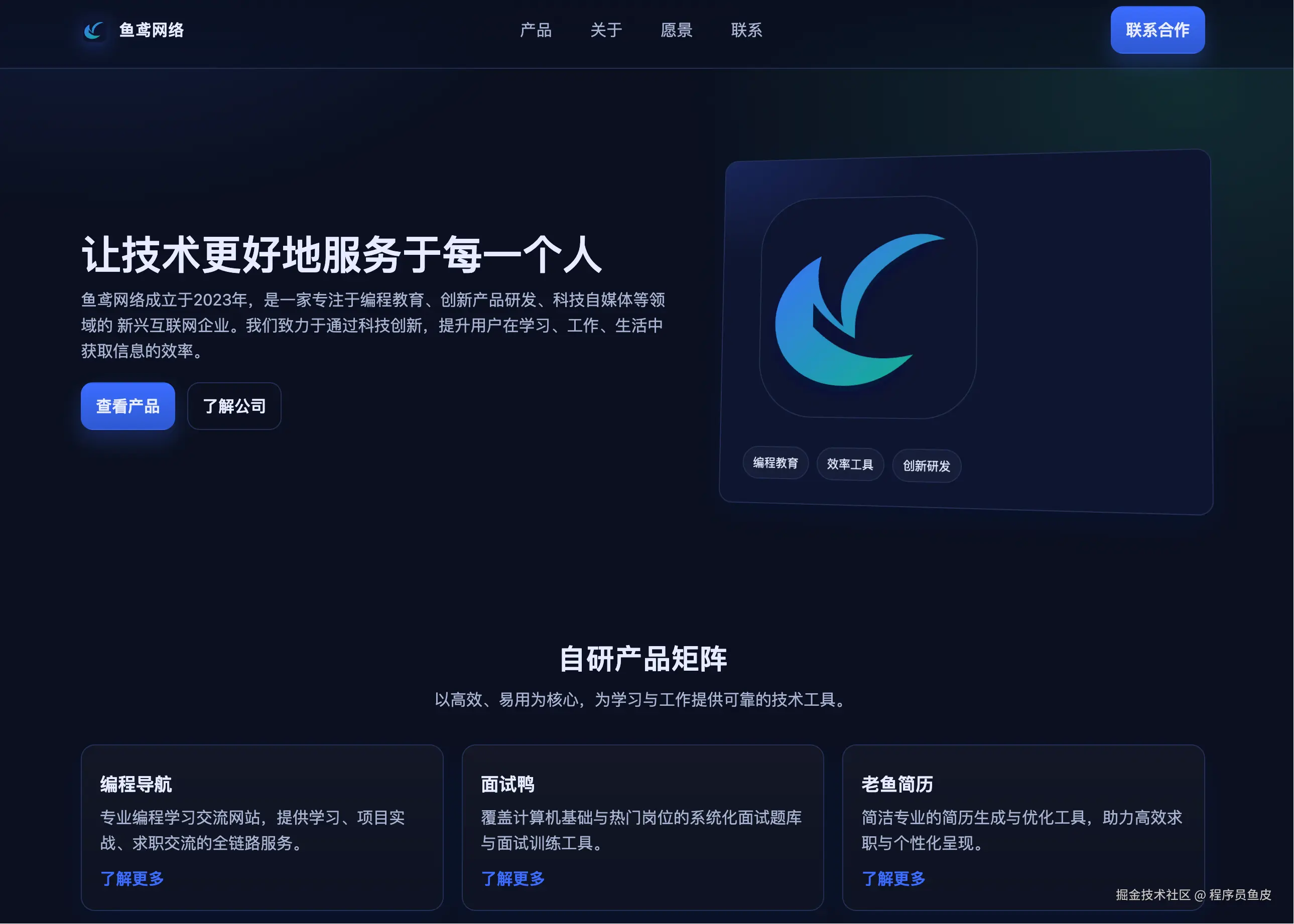最后再生成个鱼皮公司的企业官网: