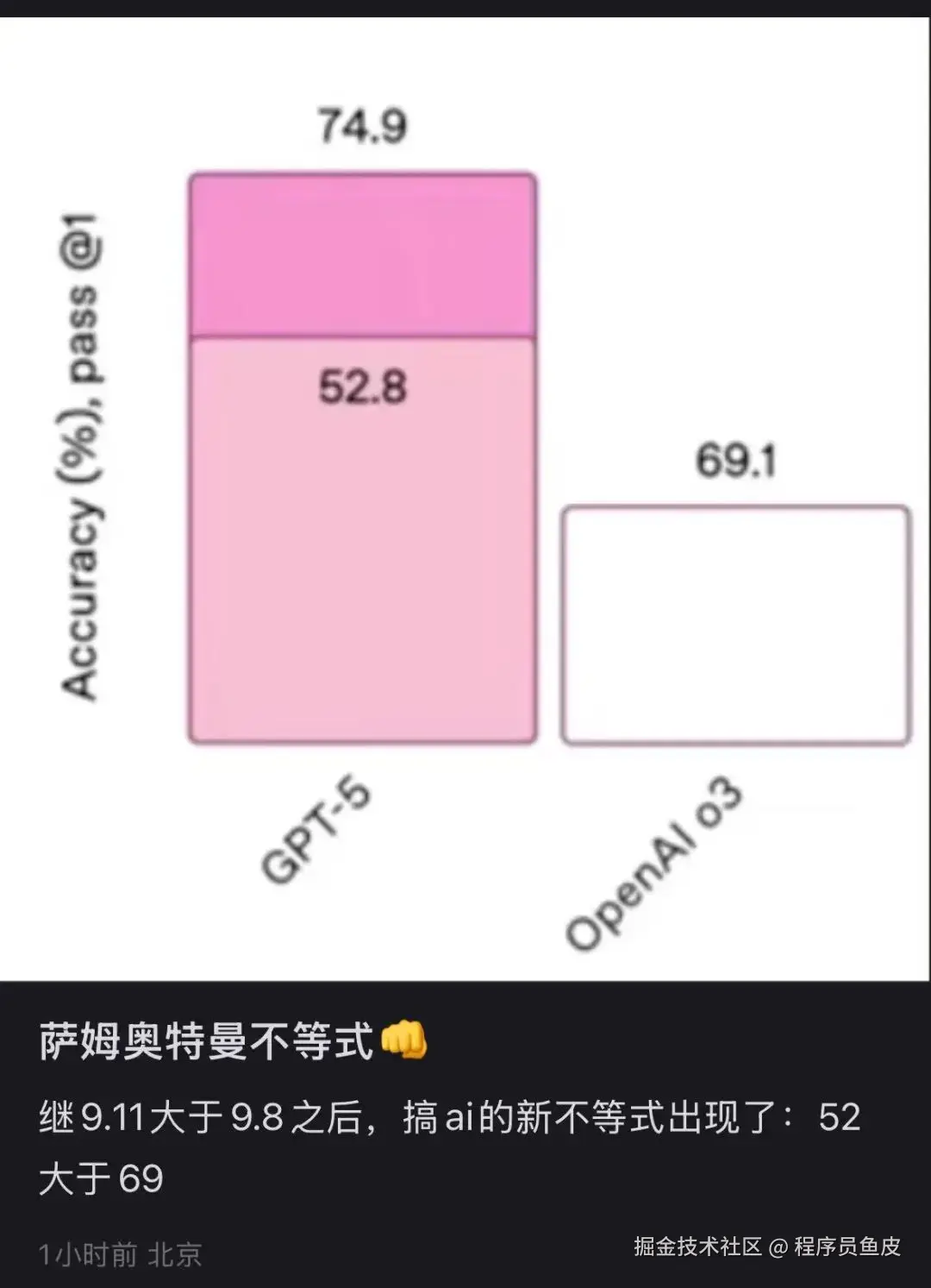 不过有趣的是,发布会上奥特曼翻车了,搞出了 52 > 69 的不等式~