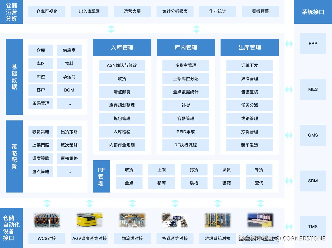 WMS 负责仓库内物流活动,与 ERP 集成确保库存数据准确及时更新,与 SCM 集成支持整个供应链效率提升。