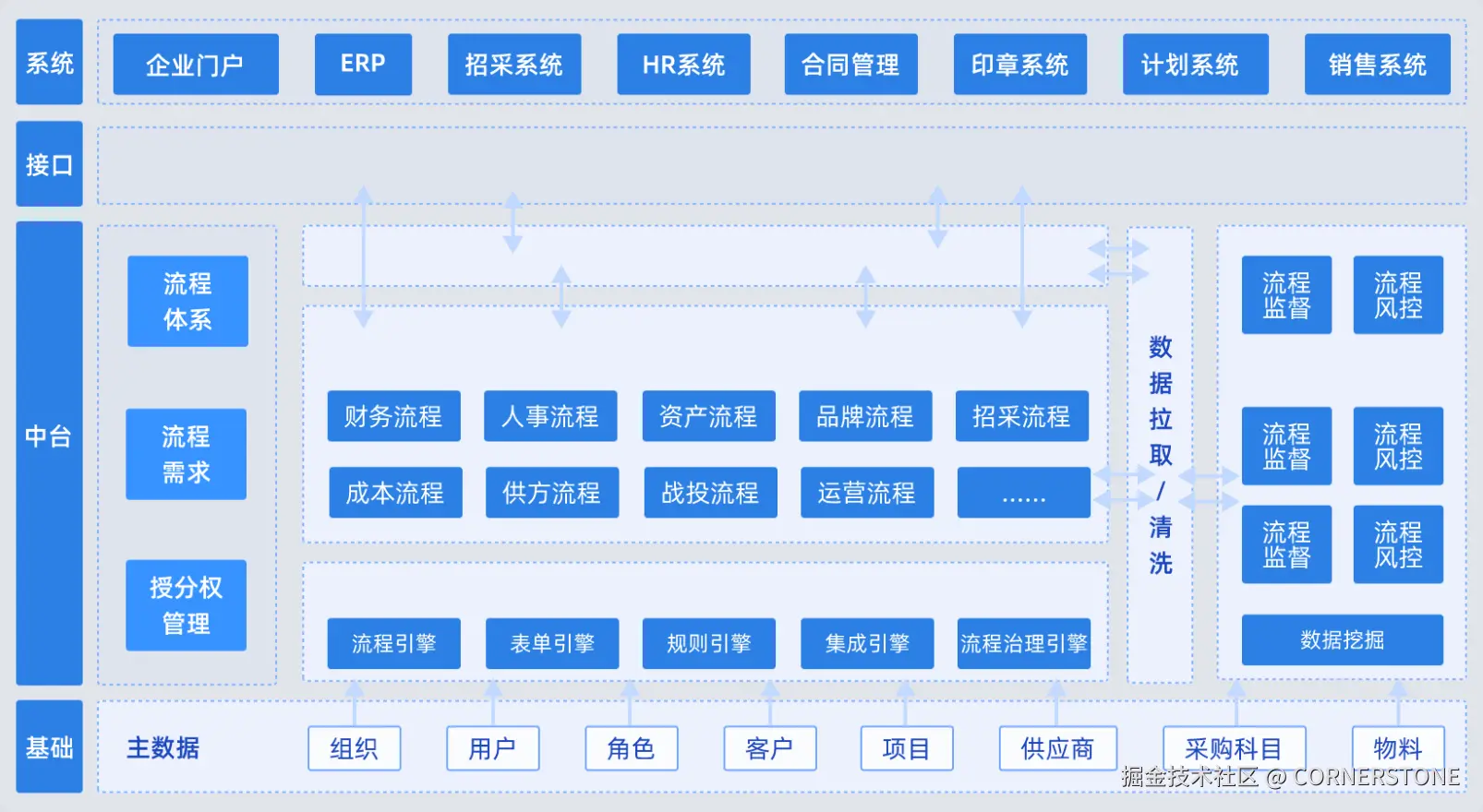 解释:对企业业务流程进行建模、自动化与优化,提升流程效率与协同性。