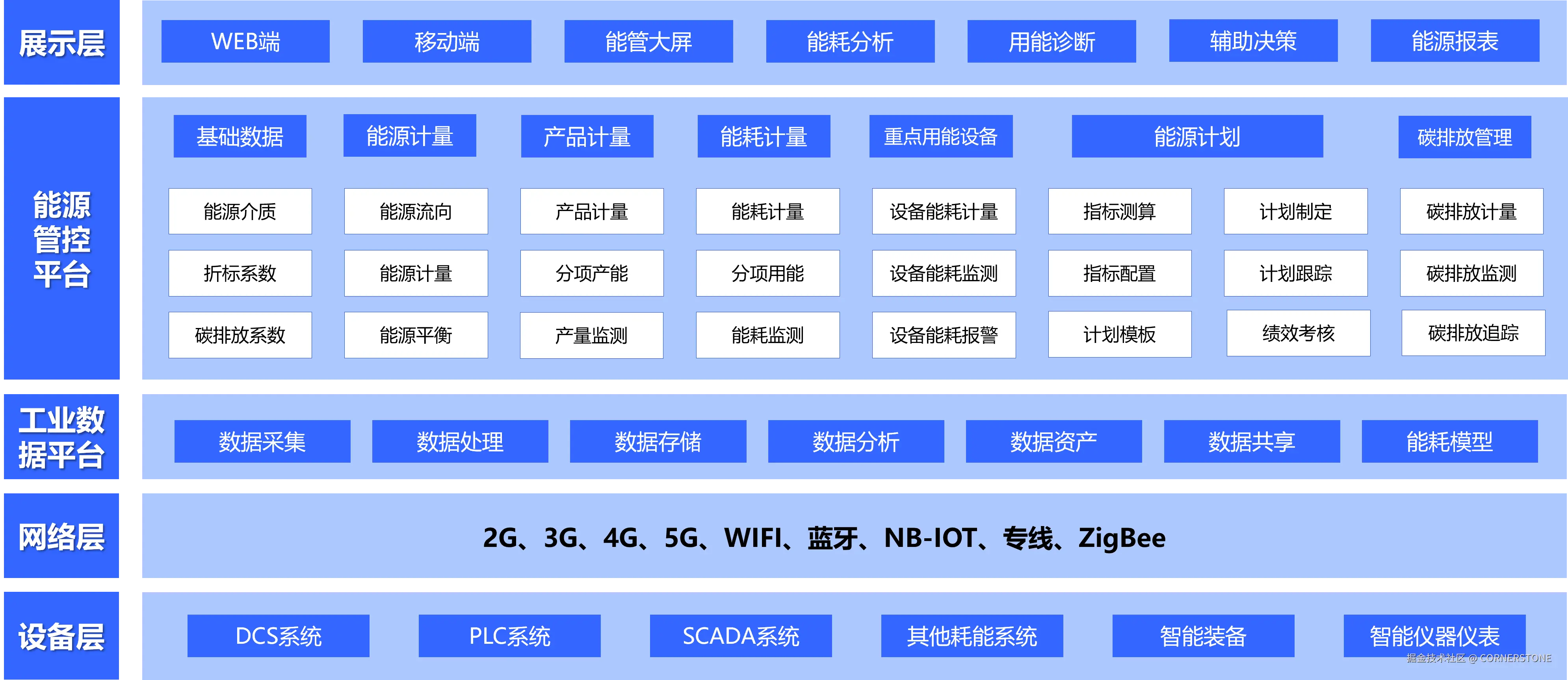 - 能源数据采集:实时收集水、电、气、热等能源消耗数据,建立能源计量体系。