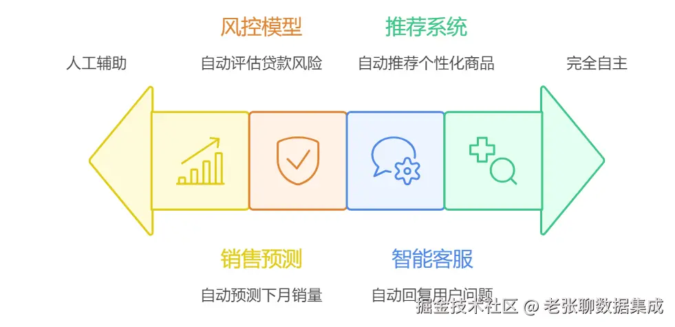 - 反馈学习机制:业务结果倒推优化模型、流程自我演化