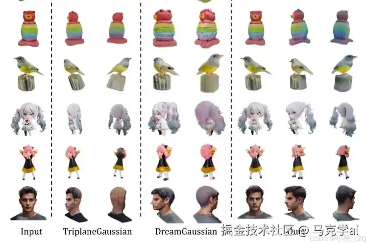 它为啥这么快?简单来说,LGM 就像一个特别聪明的 “3D 模型制造机”。它学了海量的 3D 数据,知道各种物体长什么样、有什么细节。当你给出指令,它能瞬间分析关键词,从自己的 “知识库” 里找出对应特征,快速组装成模型。而且它用的算法特别高效,就像给制造机装上了超级发动机,又快又稳。