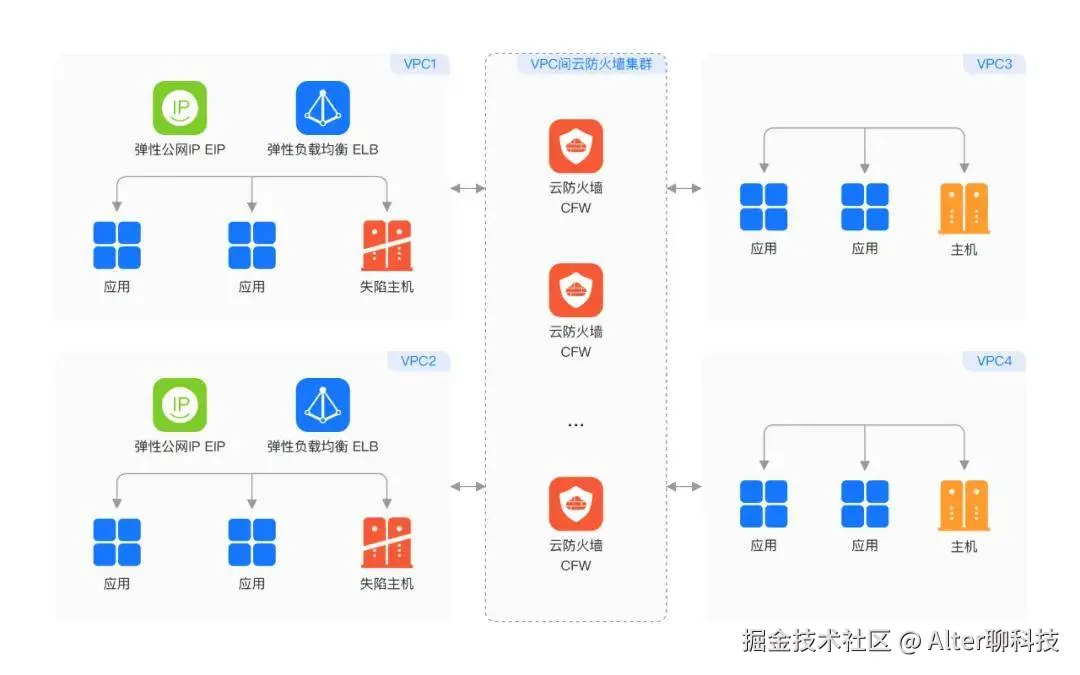 许多企业在云上有多个VPC,通过对等连接、云连接等方式实现互联。而爆炸式增长的数据与连接需求,让VPC间的“东西向”流量管控变得异常复杂。一旦单个VPC内的主机被攻破,攻击者可以对其他VPC发起横向渗透攻击。