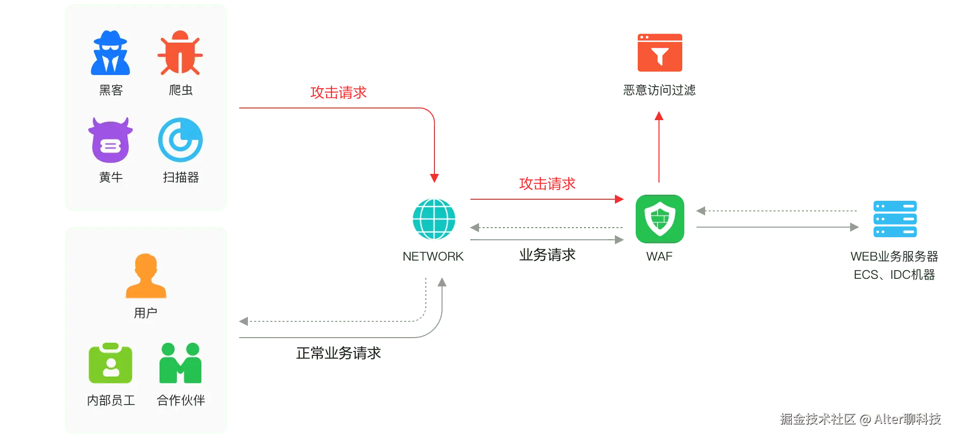 比如外界经常听到的DDoS攻击,动辄数百G乃至T级的流量规模,让传统的硬件防火墙难以招架;以及利用应用逻辑漏洞的越权访问,可以绕过传统边界防御,在内网中悄无声息地窃取数据……