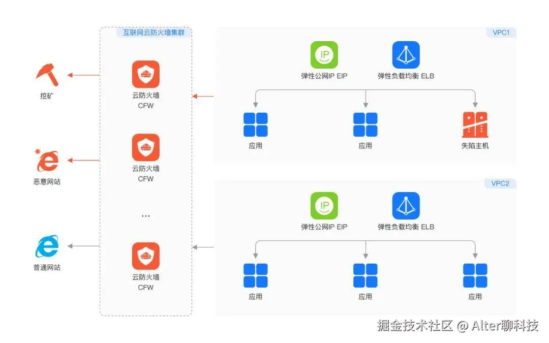 华为云的对策是云防火墙CFW,可以看作是云端流量的“总闸门”,为企业提供互联网边界和VPC边界的防护,包括资产管理、访问控制策略、攻击防御、反病毒等安全能力。