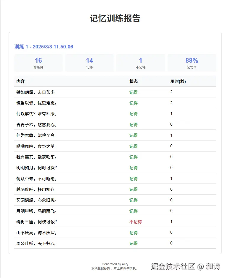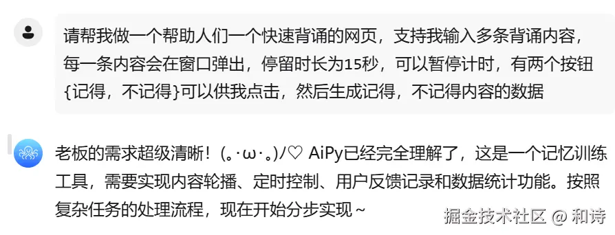 今天用AiPy智能人工助手给大家制作一款免费实用的智能记忆辅助网页工具——无需下载安装,打开浏览器就能用。帮你轻松解决教学中的记忆难题,让教学更有针对性!