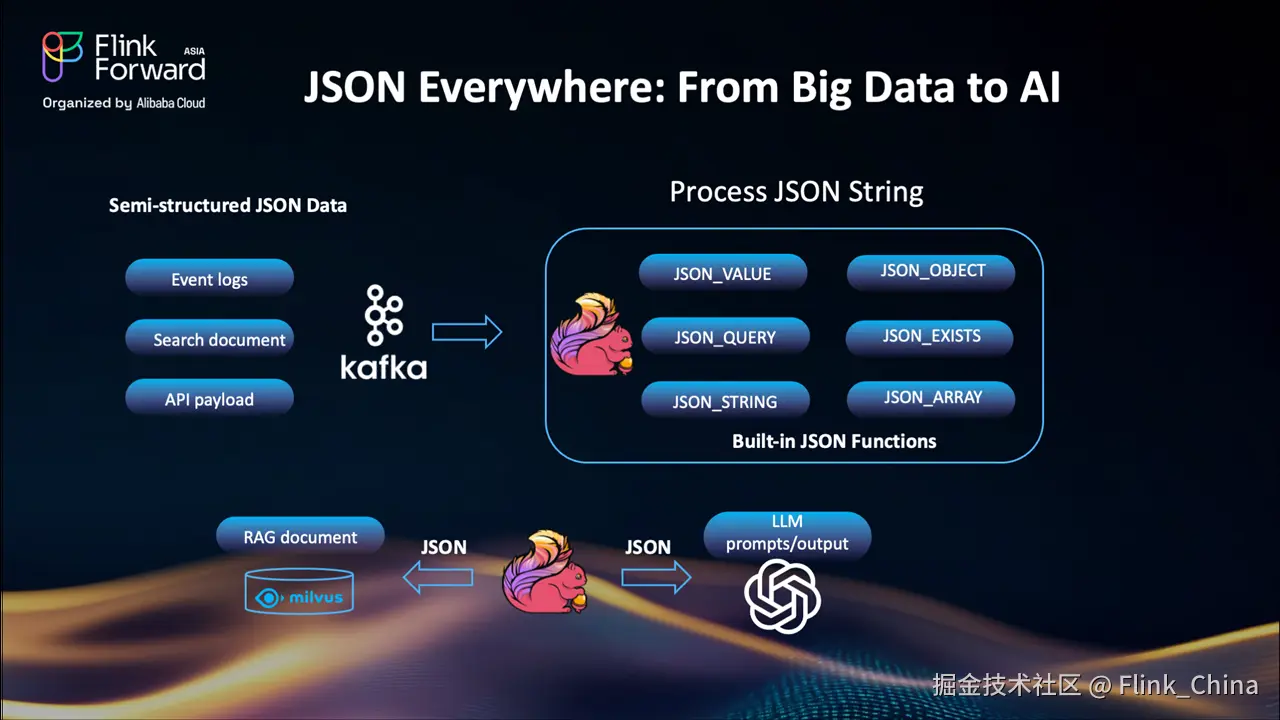 让我们从一个简单的事实开始:JSON 无处不在。从传统数据管道到新的 AI 工作流,JSON 是表示结构化和半结构化数据的重要格式。我们在事件日志、搜索文档、API 负载中看到它。RAG 管道依赖 JSON 来存储和查询文档。甚至 LLM 提示和输出通常也格式化为 JSON。