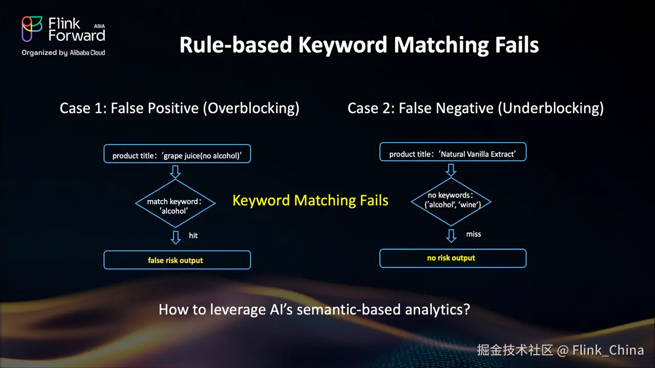 想象一个标题为"葡萄汁(无酒精)"的产品。关键词"酒精"触发了规则,系统将其标记为风险。但它明确说了"无酒精"!这是一个误报——我们阻拦了一个安全的产品,浪费了人工审核时间,并可能导致客户不满。