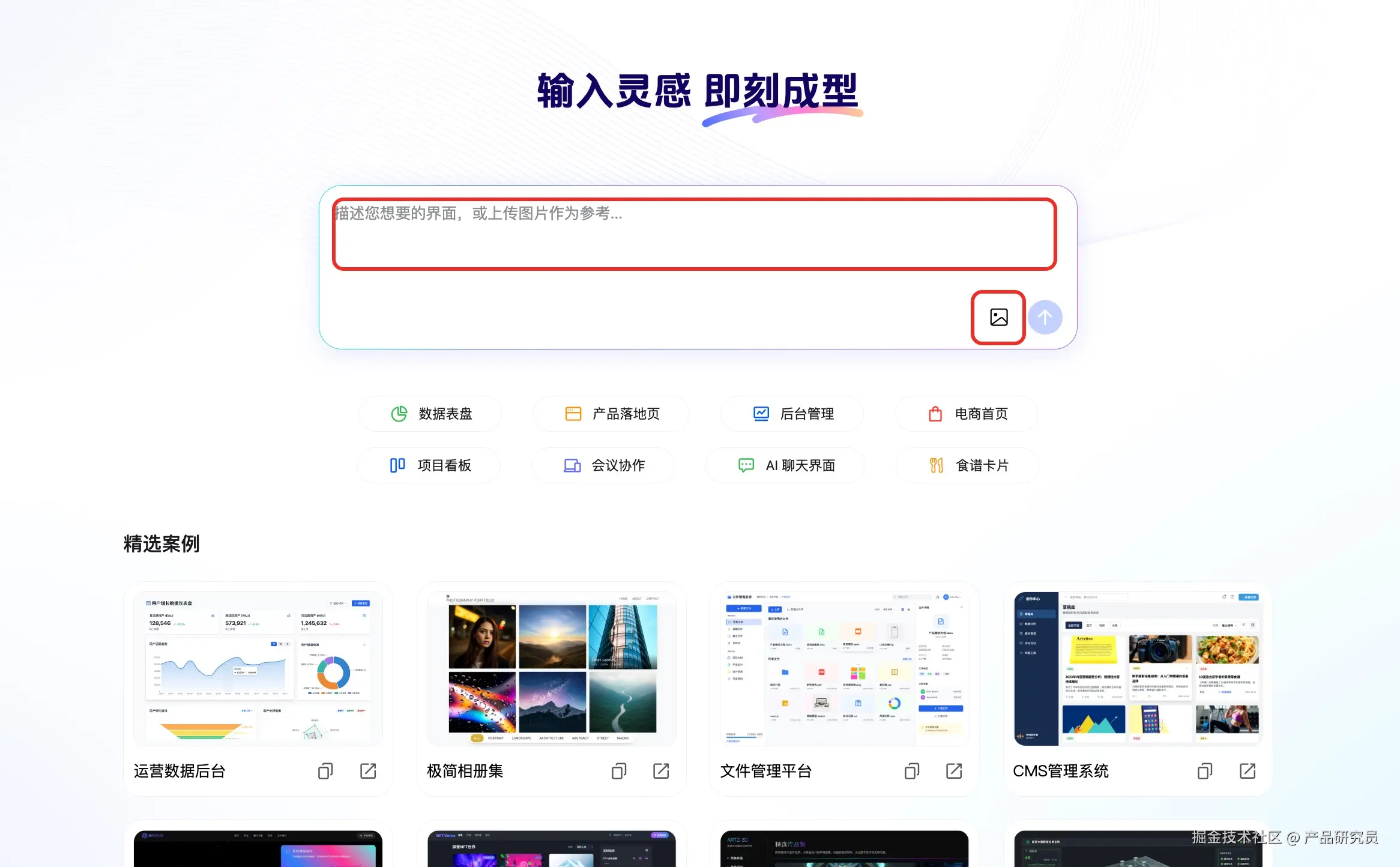首先墨刀AI支持两种生成方式:指令输入生成、上传图片生成。这次我生成的企业后台管理系统工作台首页,是通过“指令输入”方式完成的。如果你没有具体参考图,也完全可以用对话的形式和AI沟通,让它从0开始生成原型。