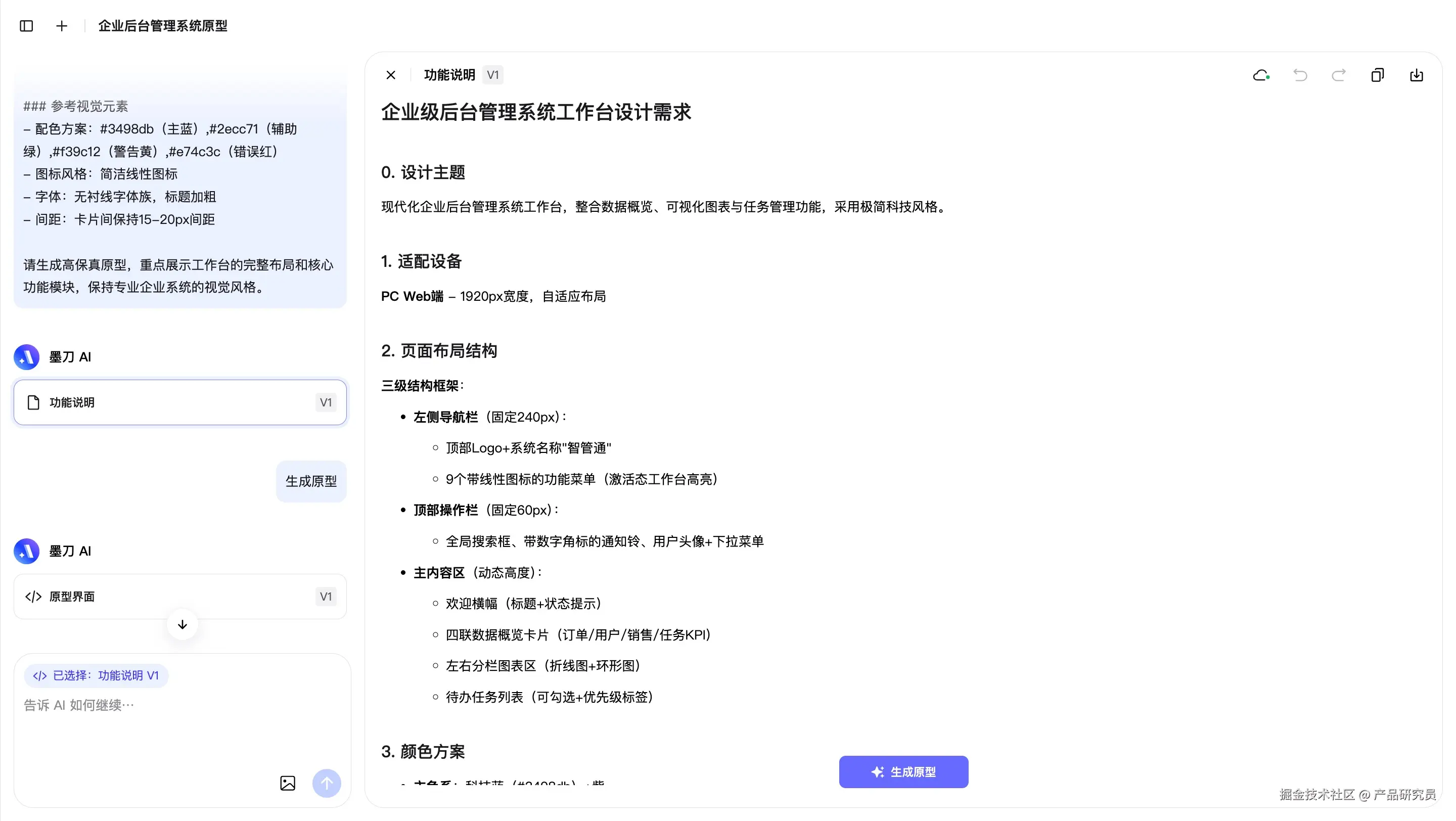 生成前,AI还会产出一份“功能说明文档”,你可以快速预览,确认无误后点击“生成原型图”。