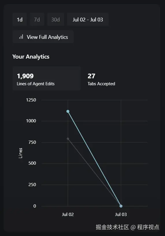结果也是在那段时间里,Agent编辑的代码行数维持在比较低的水平中,显然大幅度提高了效率。总之,高级模型的快速请求要选择性的用,好钢要用在刀刃上。