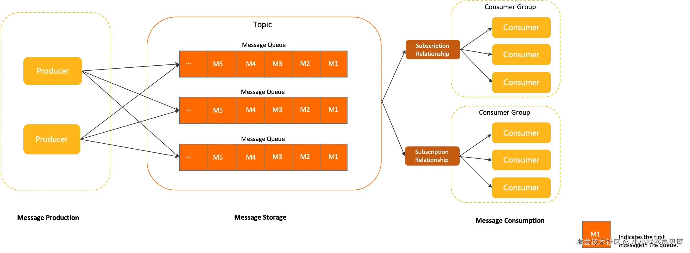 分布式消息中间件生产者 Broker 以及 消费者之间 进程间基于 Toptic 通过网路进行交互