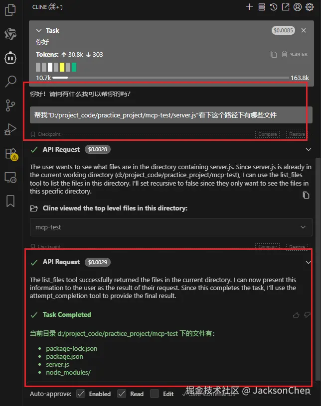 直接提问:帮我"D:/project_code/practice_project/mcp-test/server.js"看下这个路径下有哪些文件,