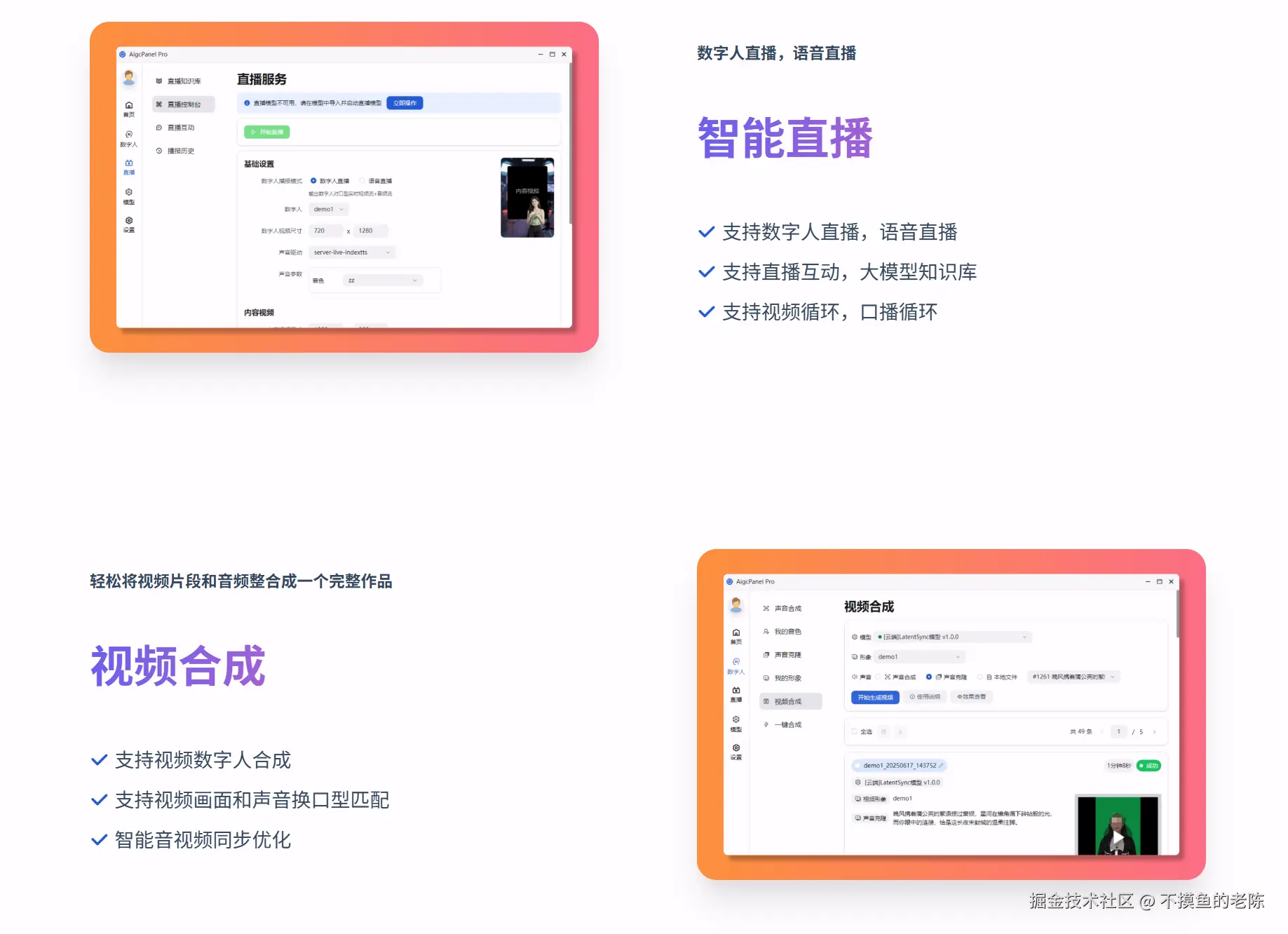 AIGCPanel是一款功能强大的开源数字人软件,提供直观的用户界面,支持管理和使用各种声音AI模型,并与CosyVoice语音合成引擎结合,实现自然流畅的声音合成和个性化声音克隆。