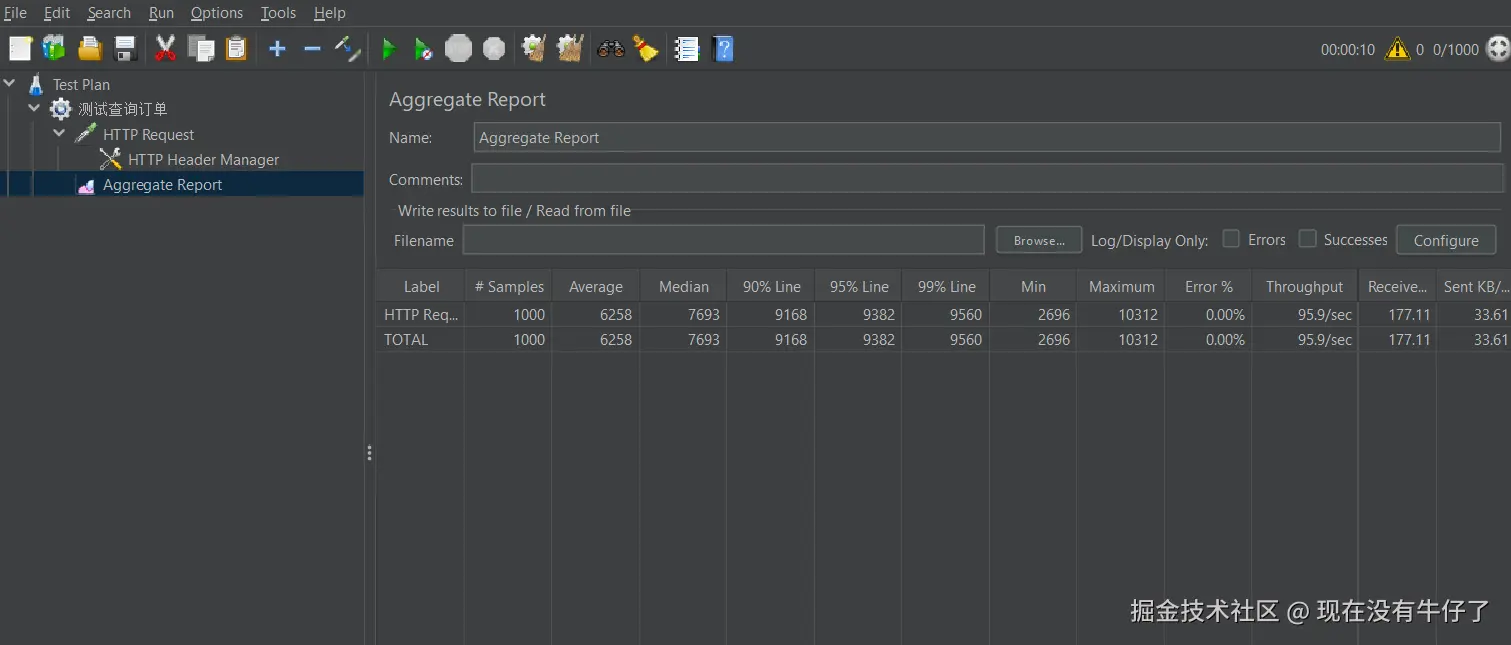 再次使用JMeter工具进行测试: