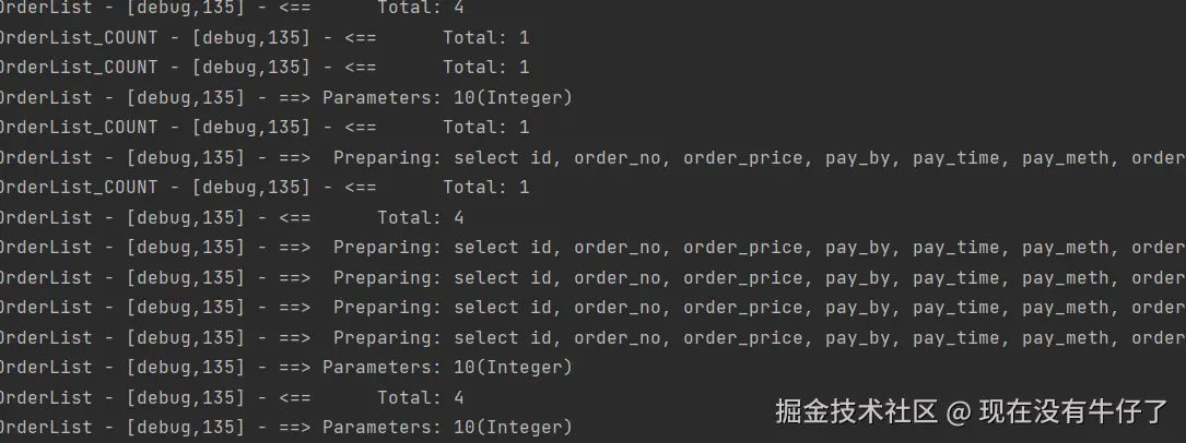可以看到,吞吐量已经恢复正常了,并且后台也只有一条查询数据库的记录,这是因为添加互斥锁之后,只有当前获取了锁的线程成功的将数据库中的数据存储到缓存中之后,才能继续进行读的操作。并且这个锁是读写互斥,读读不互斥的,所以当有了数据之后,其他的线程都可以同时查询数据。