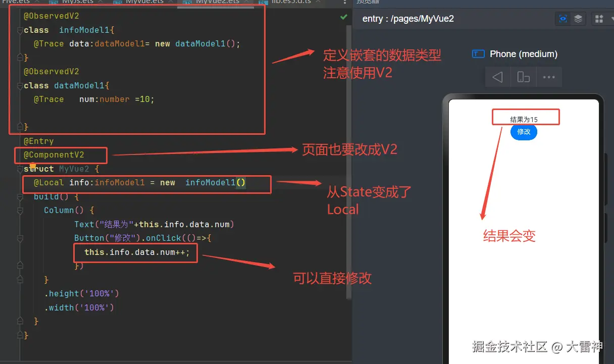 鸿蒙中嵌套数据的响应式