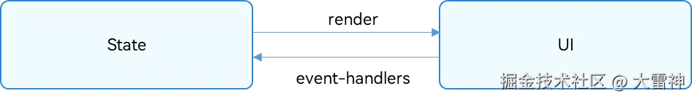看到图片没:State就是状态的意思 UI就是页面的意思 研究的就是数据变了页面变