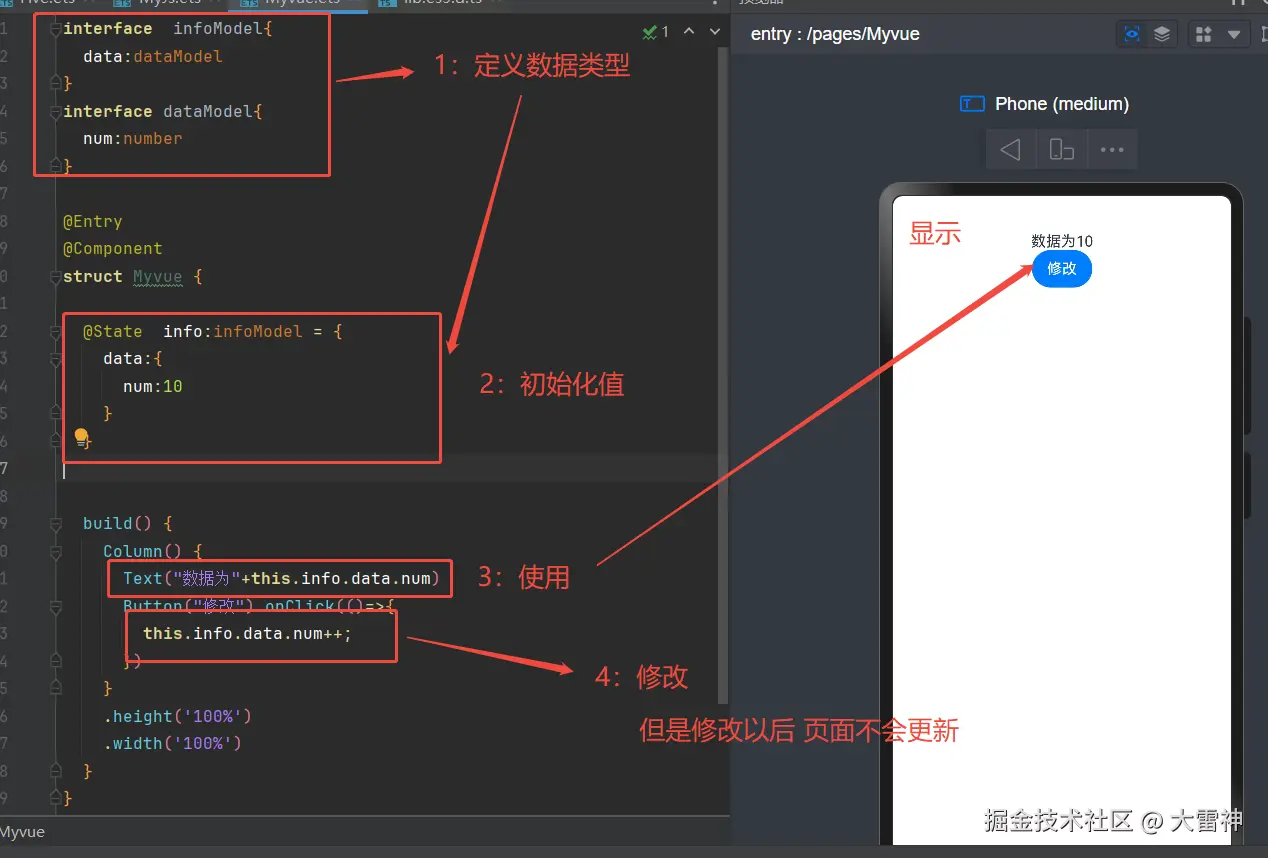 发现在鸿蒙中不能像Vue那样直接修改嵌套数据 直接修改的数据页面不会更新