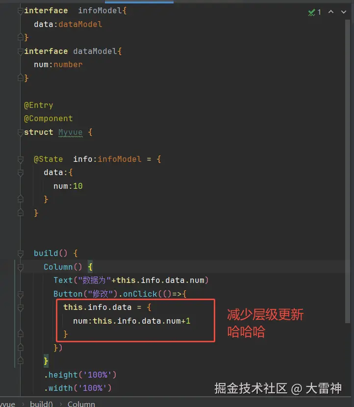 这样修改就可以了,这是鸿蒙第一版的问题,现在推荐使用V2的状态管理来做