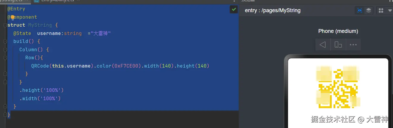 @State username:string ="大雷神"