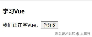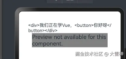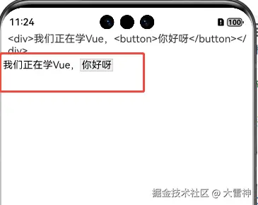 const txt = ref("<div>我们正在学Vue,<button>你好呀</button></div>")