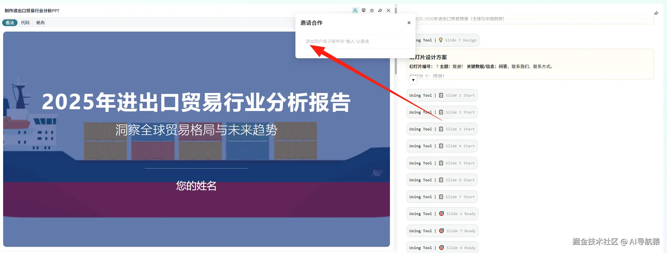 Agnes 直接省掉了这堆步骤。你只需要在它的搜索框里输入方向,比如“制作进出口贸易行业分析PPT”,它会自动聚合资料、抽取结构,甚至连 PPT 的初版都能直接生成——排好结构、图文匹配、样式统一。