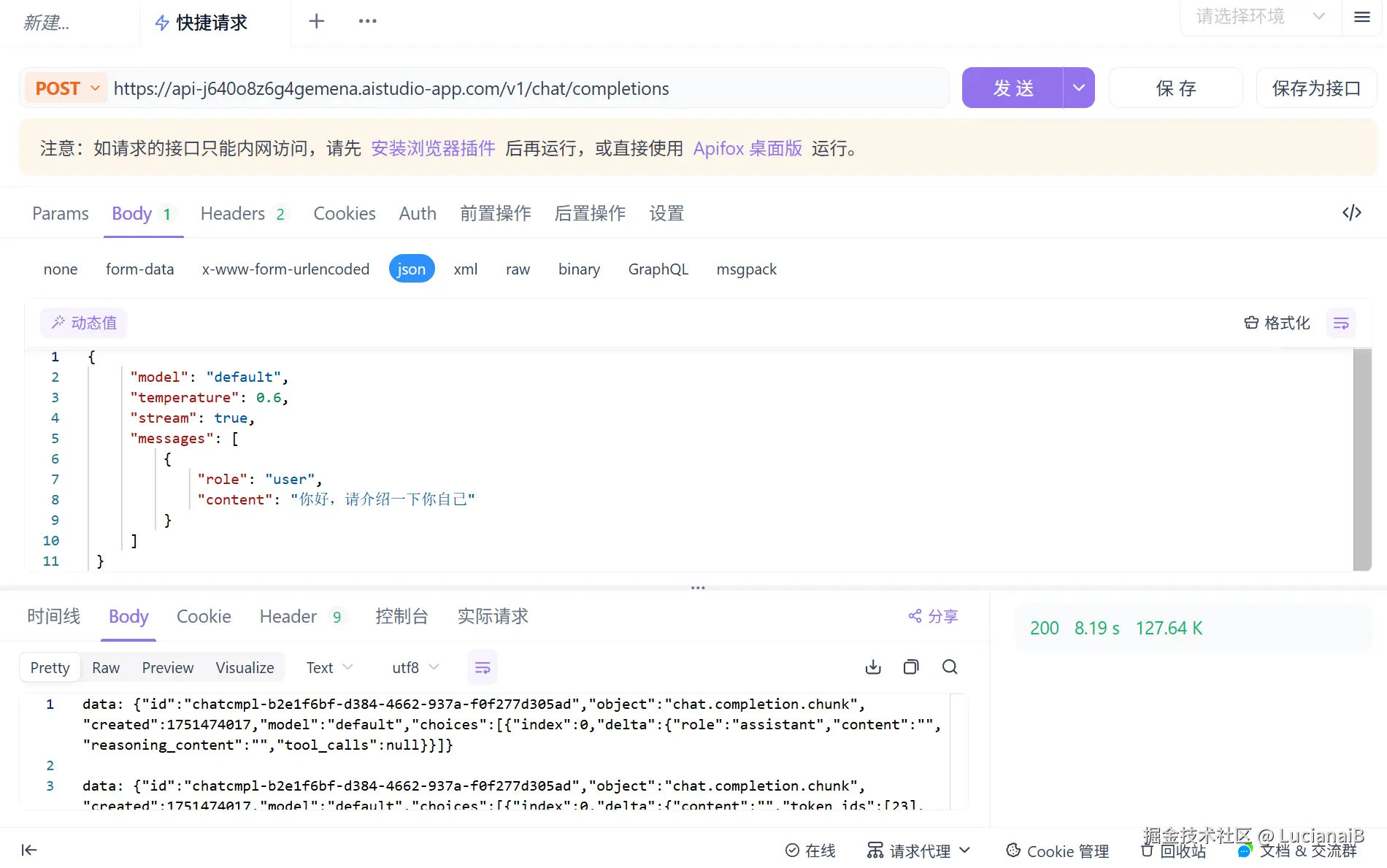 - 在 apifox 使用 CURL 调用接口: Apifox