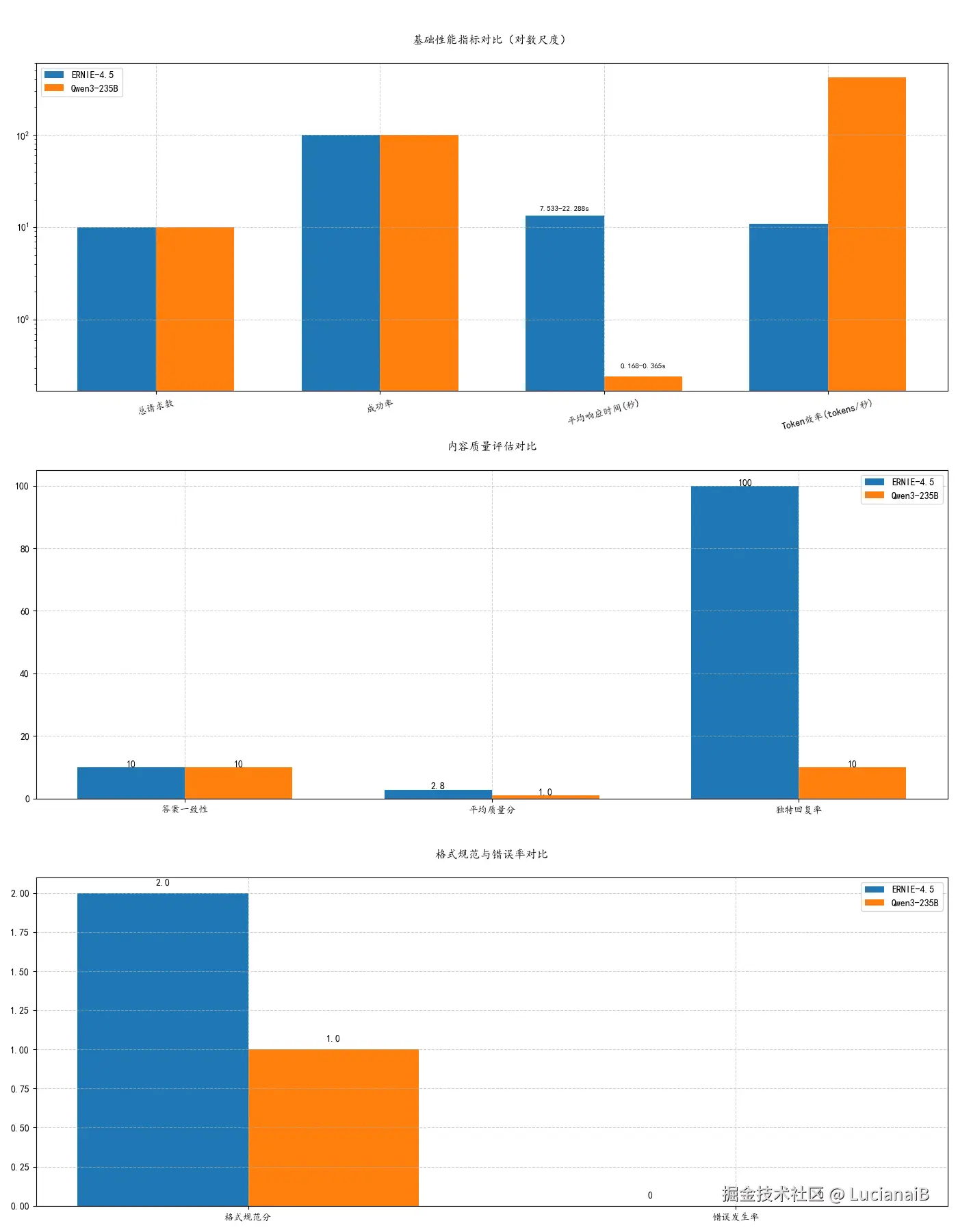 - 质量分:ERNIE(2.8/5)显著优于Qwen3(1.0/5),且ERNIE有评分波动(2-4分)