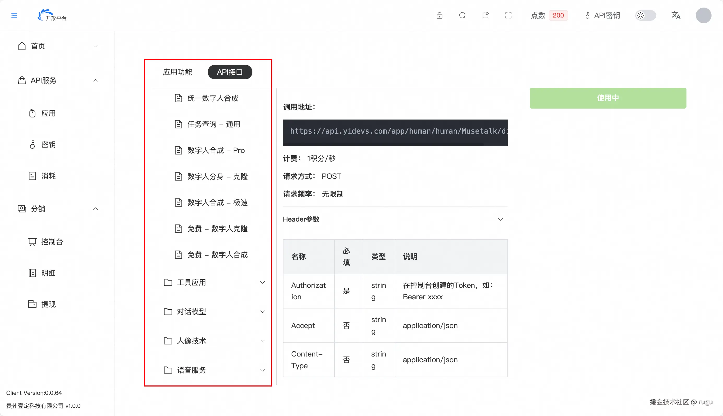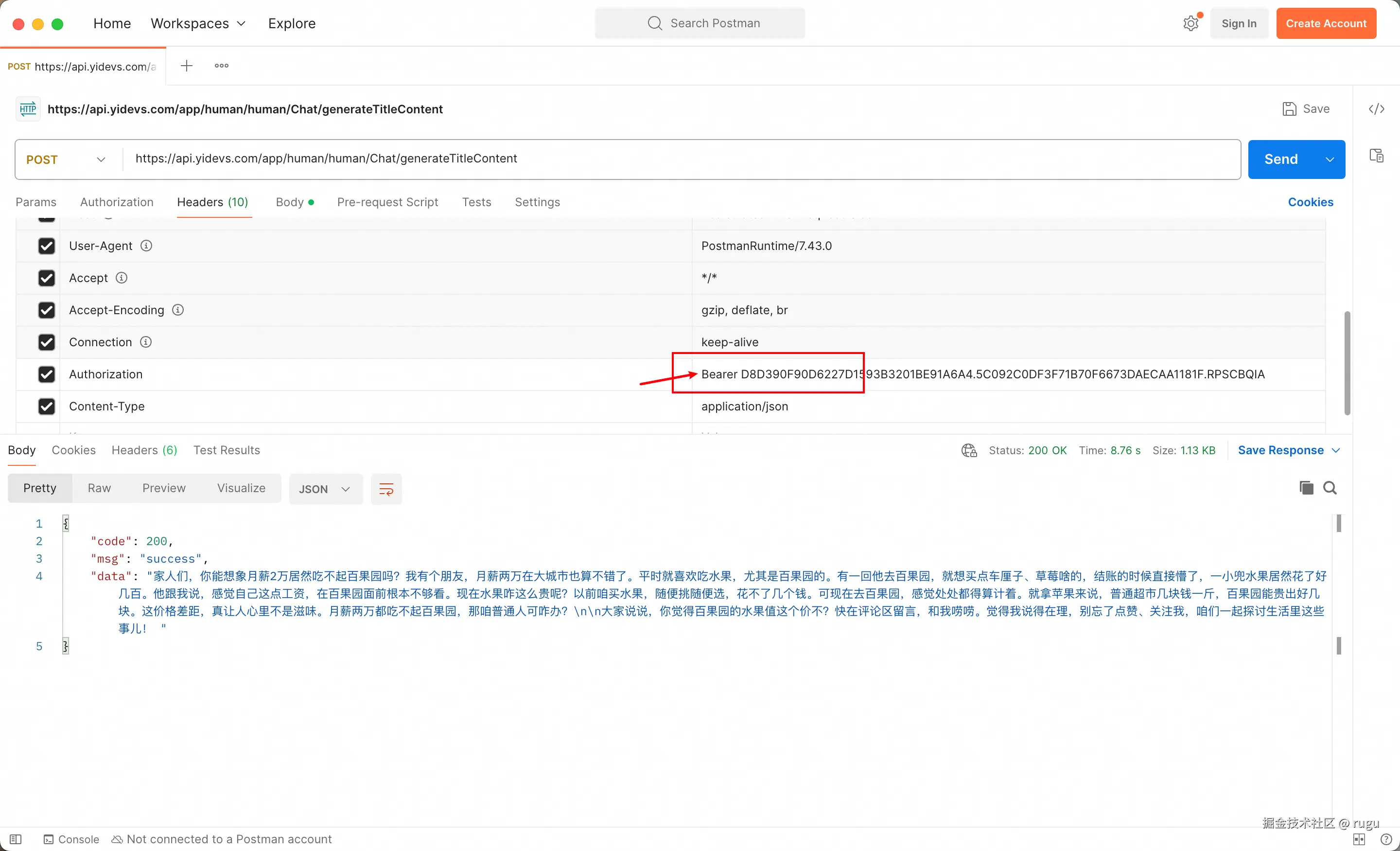 按照文档编写请求header和请求体即可,注意这里不要忘了前面的 Bearer
