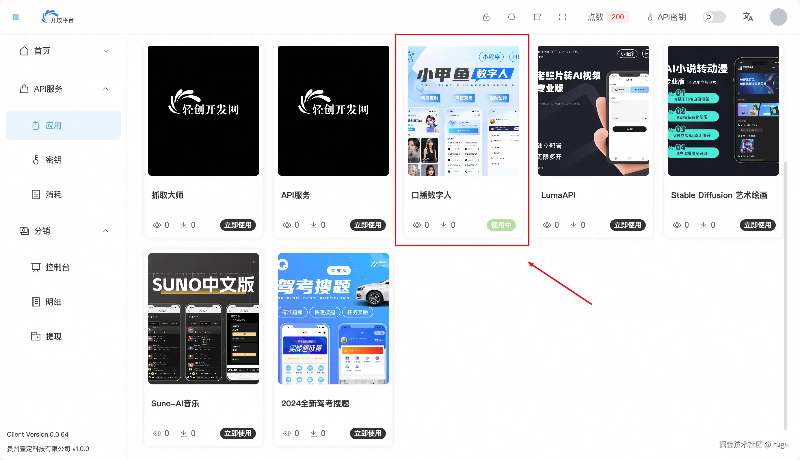 然后在应用中找到这个“小甲鱼口播数字人”的应用,点击立即使用