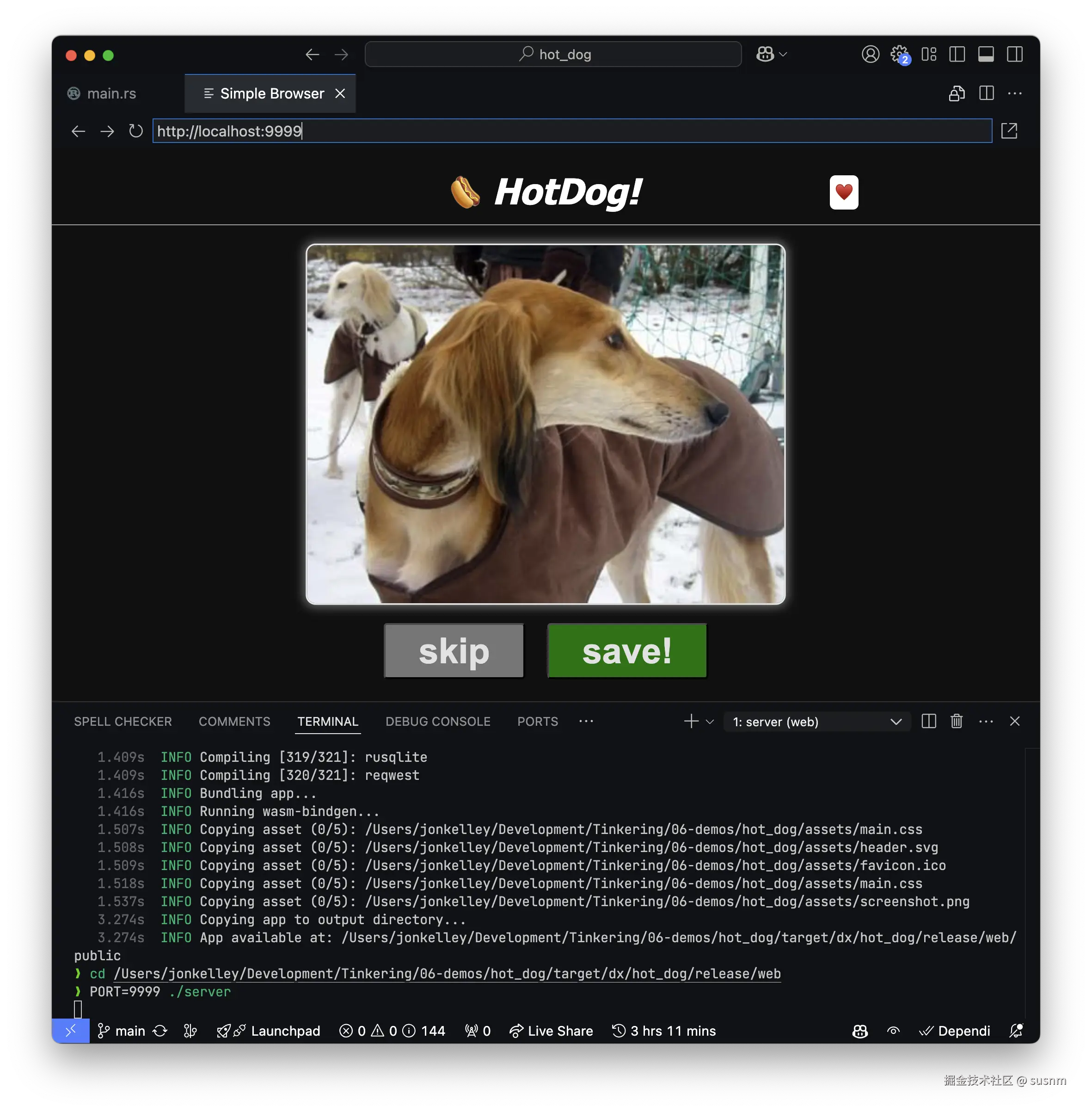 HotDog 同样支持 macOS、Windows 和 Linux 系统!我们可以使用 dx serve --platform desktop 命令将应用程序以桌面应用程序的形式运行。