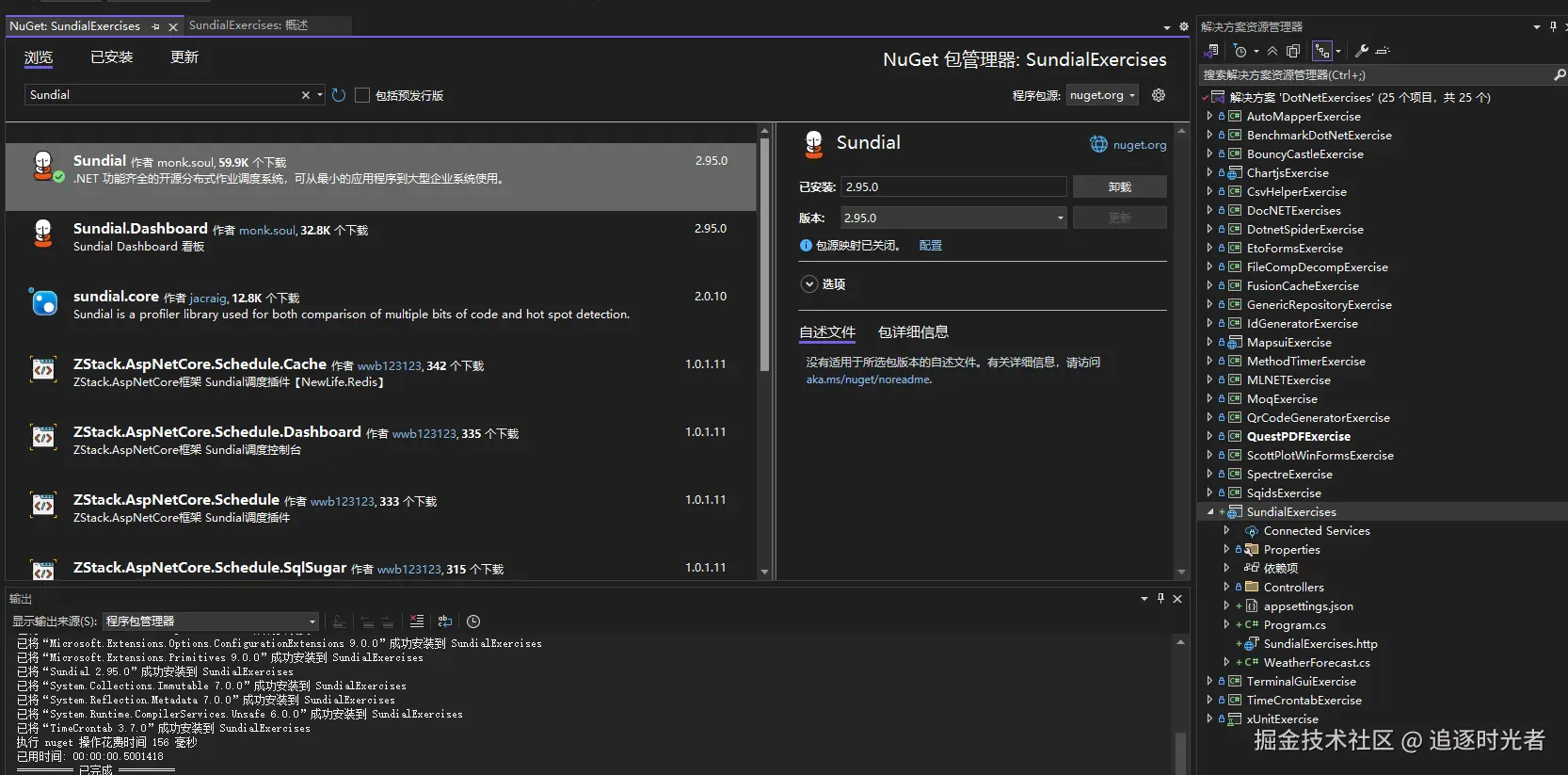 在 NuGet 包管理器中搜索:Sundial 进行安装。