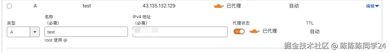 服务绑定域名后,去给域名增加一条DNS解析,我这里是使用的cloudflare。