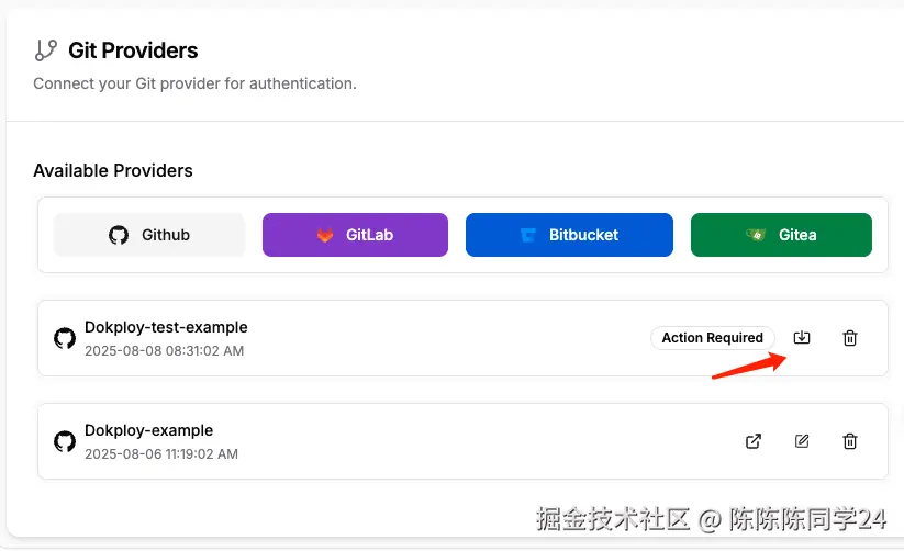 首先配置需要配置好Git仓库,方便Dokploy去拉取代码部署。