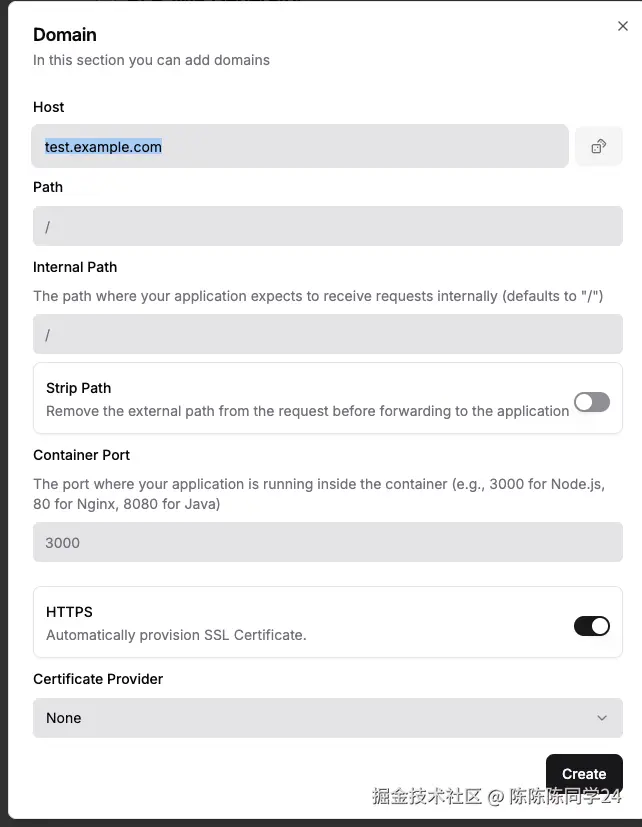 部署成功后,可以在Domain菜单中给服务绑定域名,这样就可以通过域名来访问对应的服务了,从Vercel迁移过来的时候,先使用一个子域名进行测试,如果没问题再切换到正式域名上。