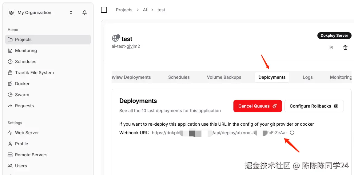 - 最后的curl请求的链接需要替换成对应Dokploy上项目的部署Webhook URL