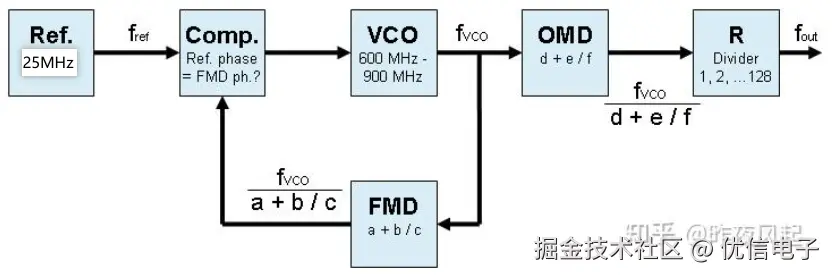 如何根据参考频率 (fref) 生成所需的输出频率 (fout)。输出频率由下面的公式表示