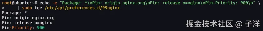 这条命令确保优先从Nginx官方仓库安装软件包,而不是 Ubuntu 自带的版本。