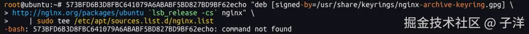echo "deb [signed-by=/usr/share/keyrings/nginx-archive-keyring.gpg] http://nginx.org/packages/ubuntu `lsb_release -cs` nginx" | sudo tee /etc/apt/sources.list.d/nginx.list
